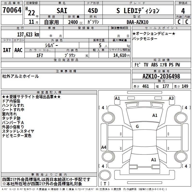 TOYOTA SAI S LED EDITION - лот 70064
