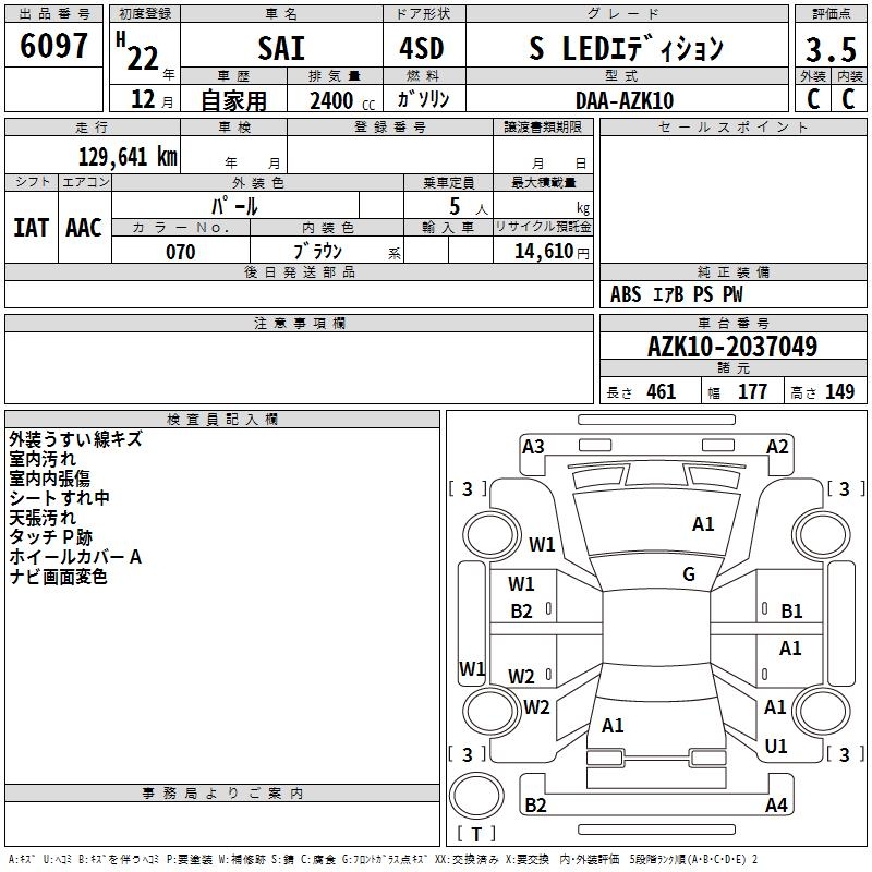 TOYOTA SAI S LED EDITION - лот 6097