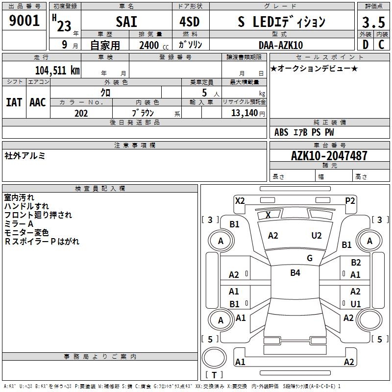 TOYOTA SAI S LED EDITION - лот 9001