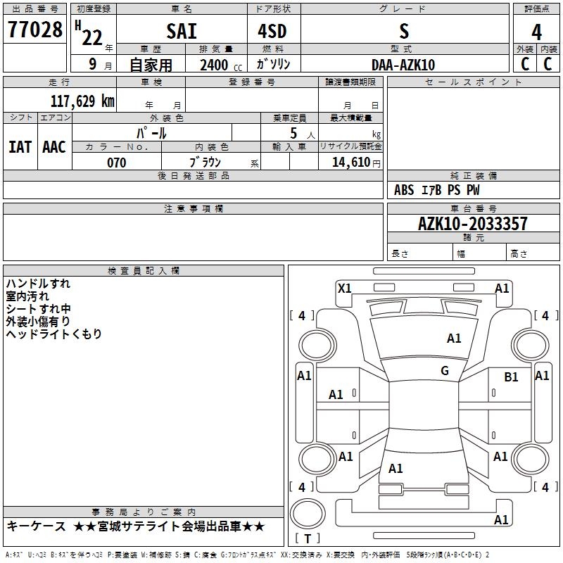 TOYOTA SAI S - лот 77028