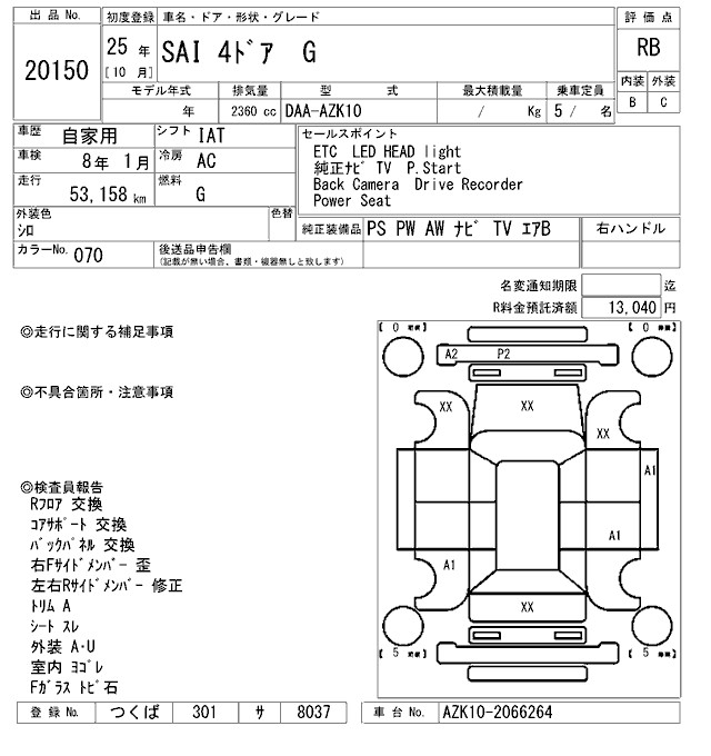 TOYOTA SAI G - лот 20150