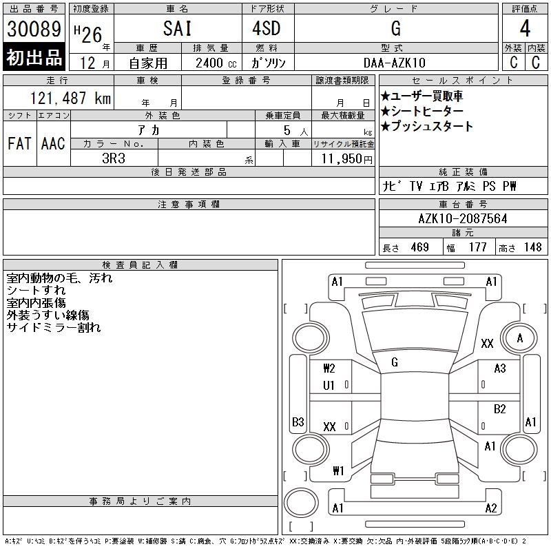 TOYOTA SAI G - лот 30089