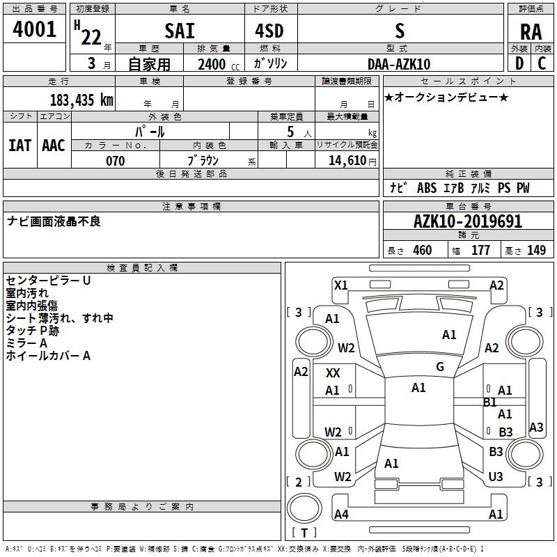 TOYOTA SAI S - лот 4001