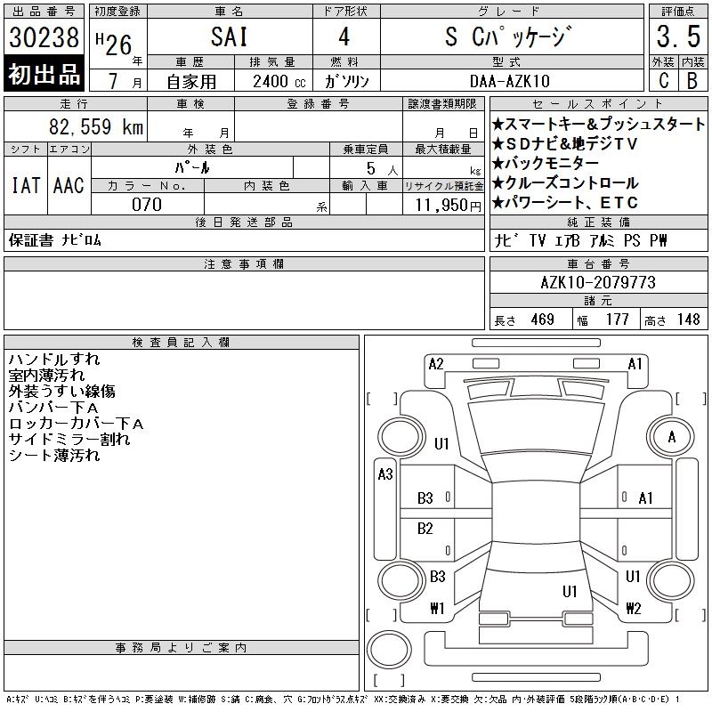 TOYOTA SAI S C PACKAGE - лот 30238