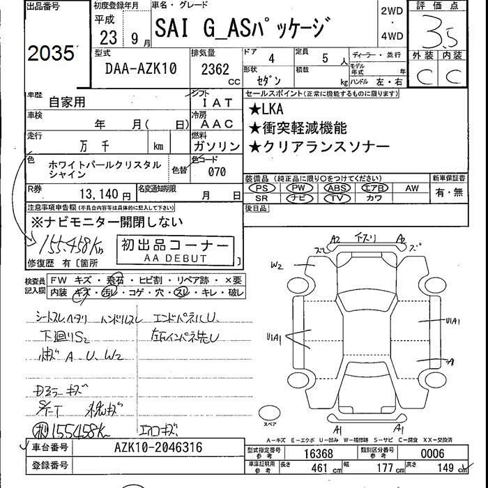 TOYOTA SAI G AS PACKAGE - лот 2035