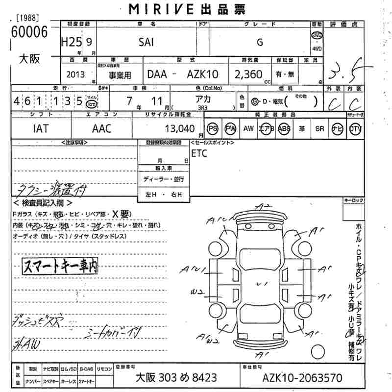 TOYOTA SAI G - лот 60006