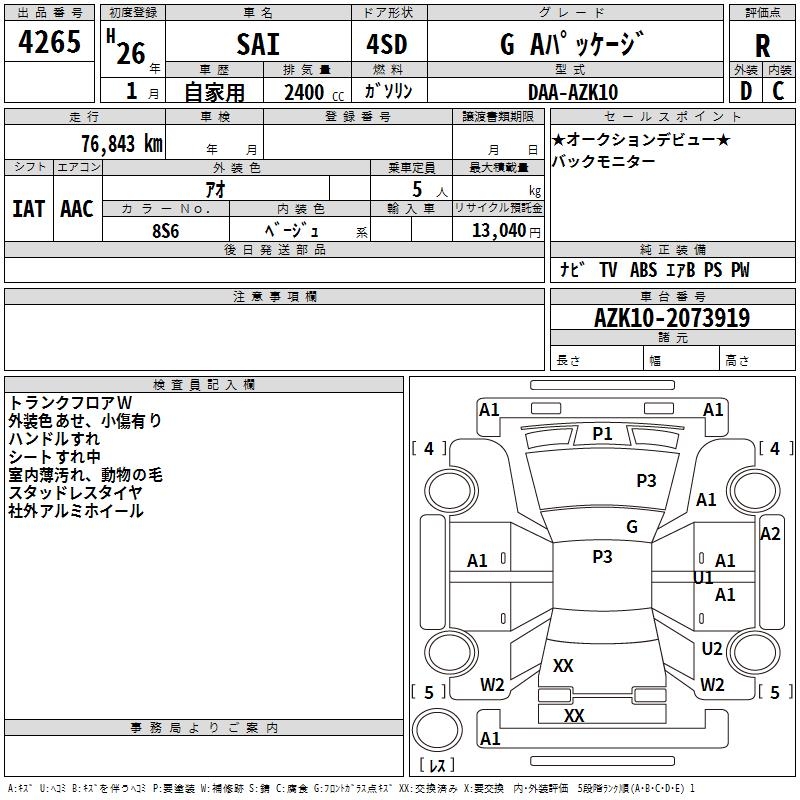 TOYOTA SAI G A PACKAGE - лот 4265