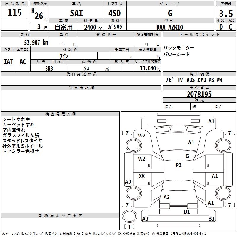 TOYOTA SAI G - лот 115