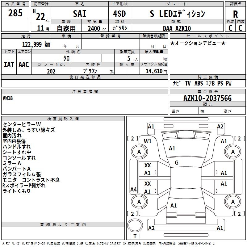 TOYOTA SAI S LED EDITION - лот 285