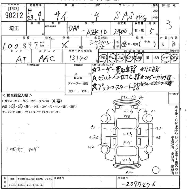 TOYOTA SAI S_AS PACKAGE - лот 90212