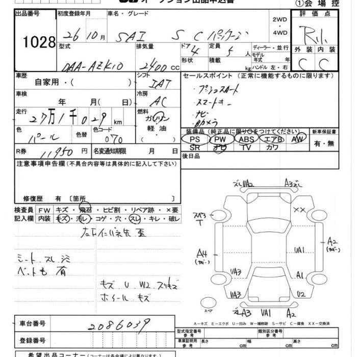 TOYOTA SAI S C PACKAGE - лот 1028