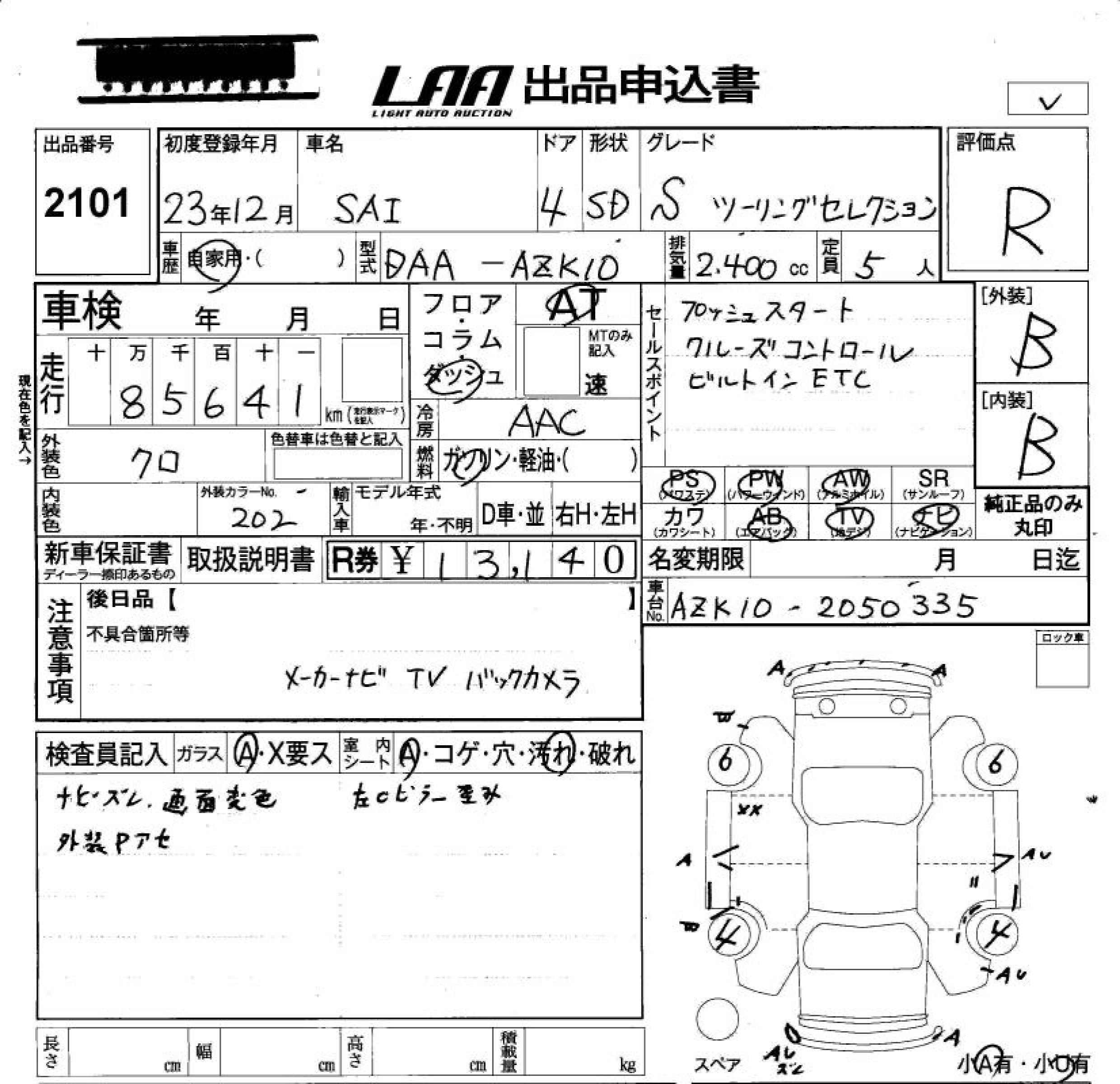 TOYOTA SAI S TOURING SELECTION - лот 2101