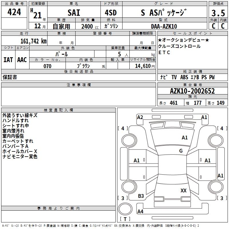 TOYOTA SAI S AS PACKAGE - лот 424