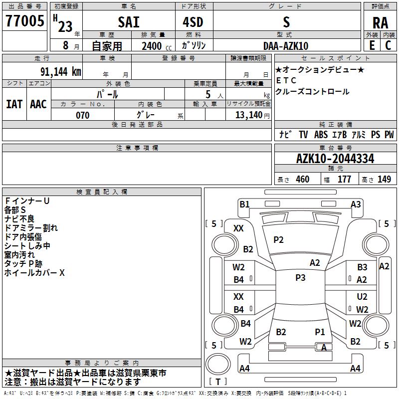 TOYOTA SAI S - лот 77005