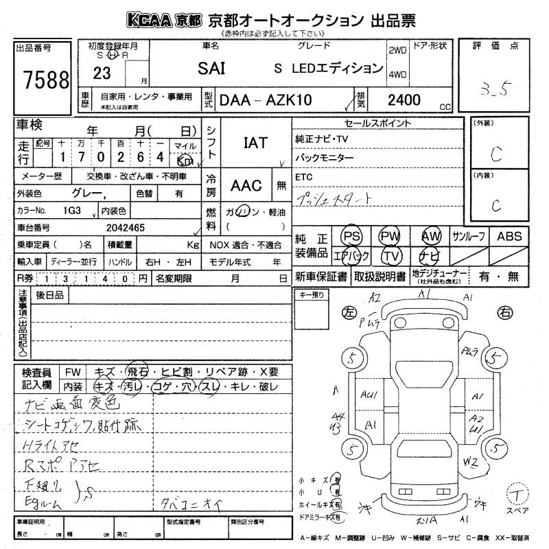 TOYOTA SAI S LED EDITION - лот 7588