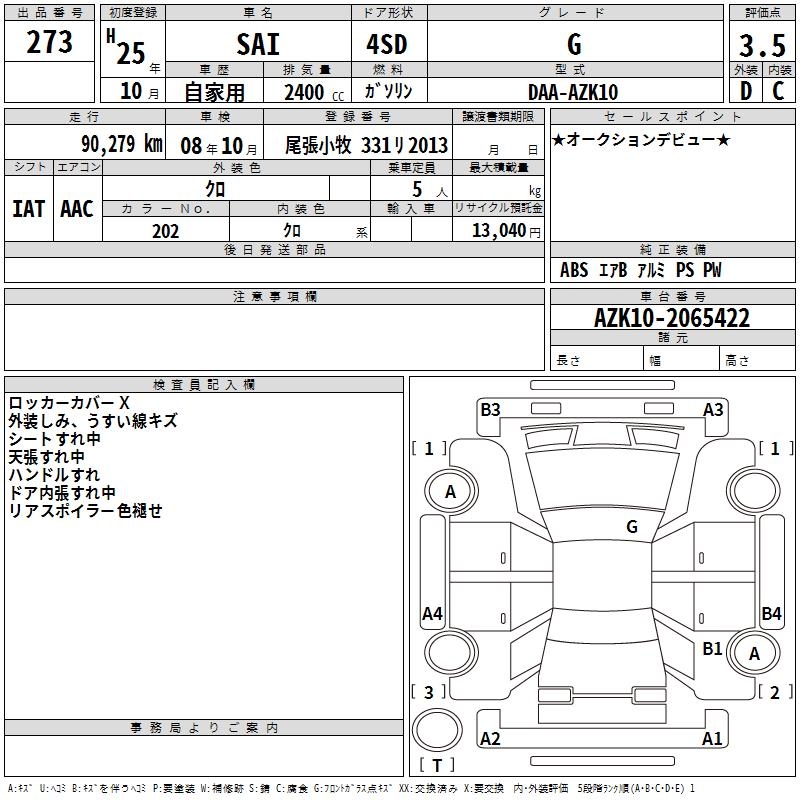 TOYOTA SAI G - лот 273
