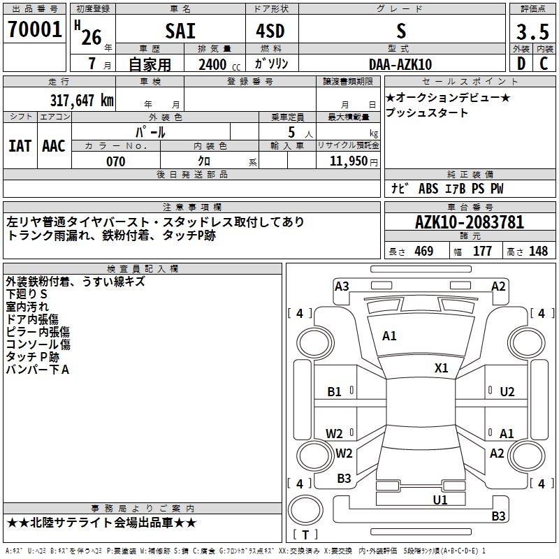 TOYOTA SAI S - лот 70001
