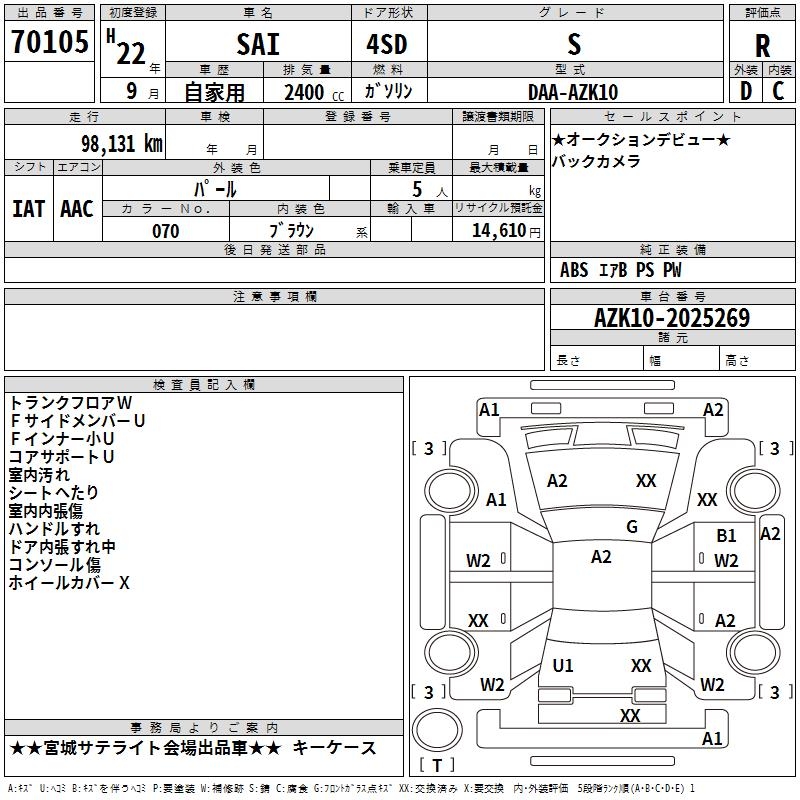 TOYOTA SAI S - лот 70105