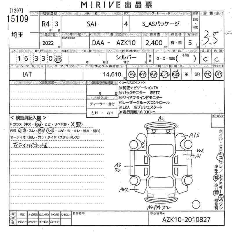 TOYOTA SAI S_AS PACKAGE - лот 15109