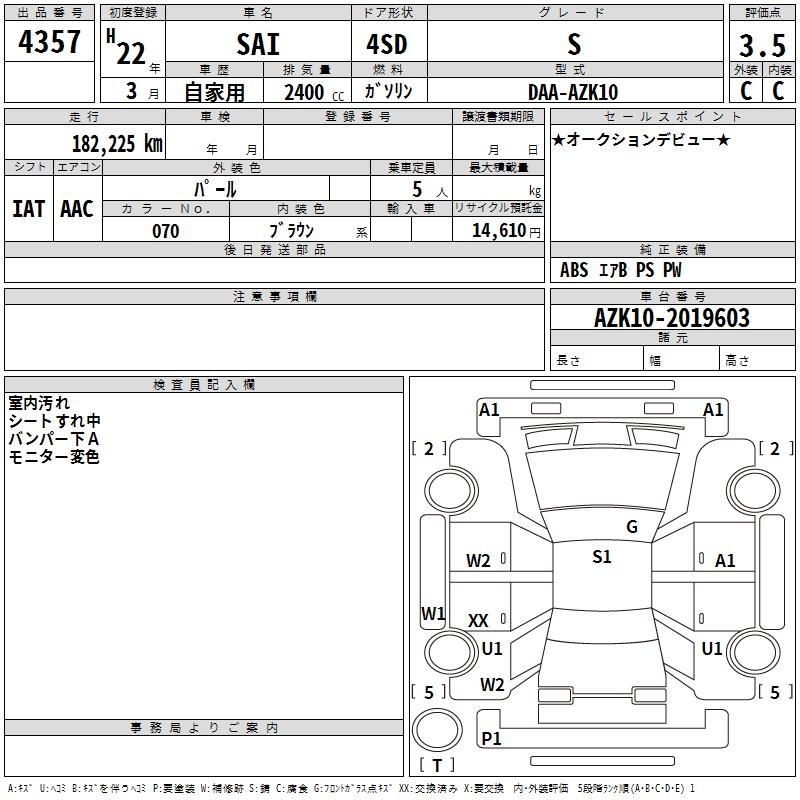 TOYOTA SAI S - лот 4357