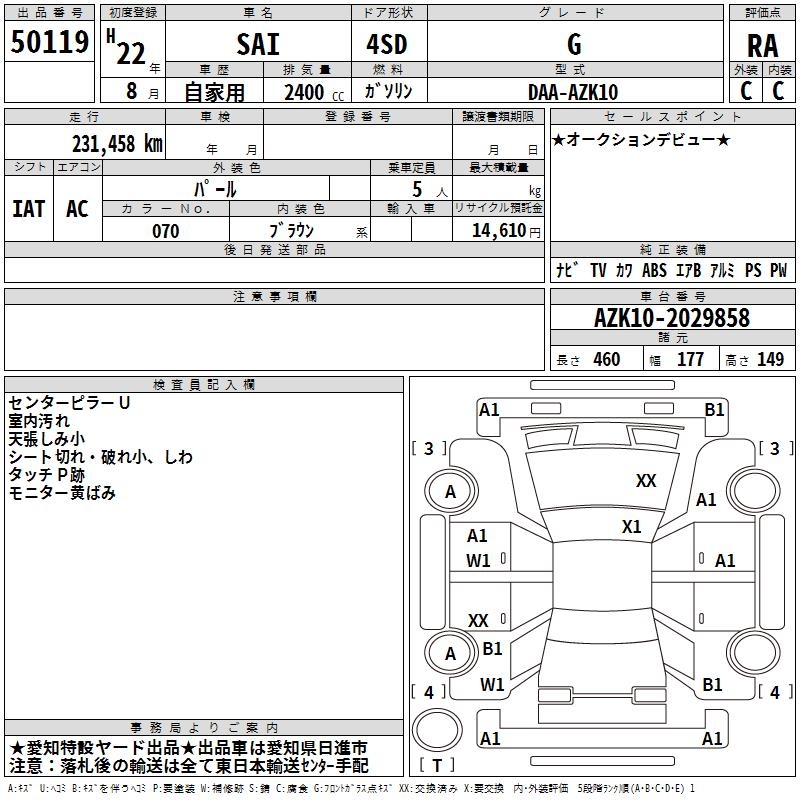 TOYOTA SAI G - лот 50119