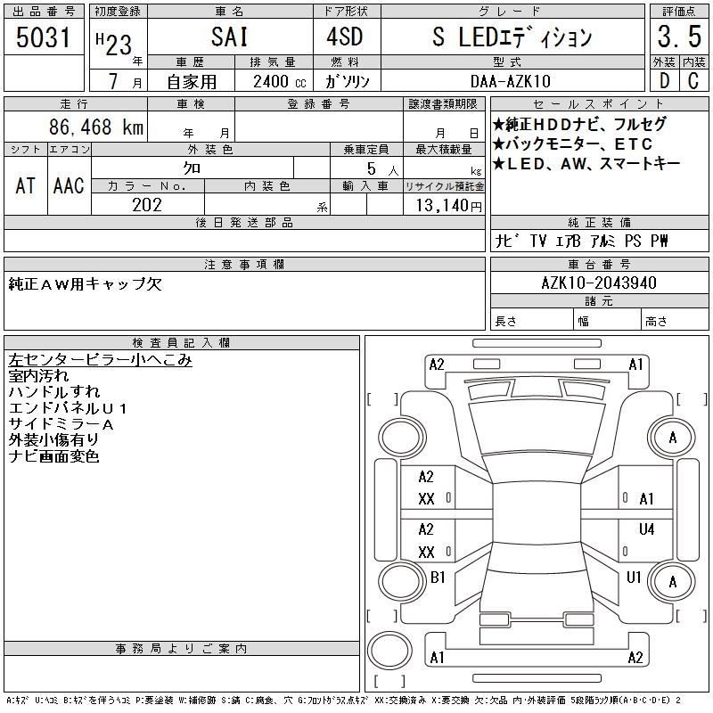 TOYOTA SAI S LED EDITION - лот 5031