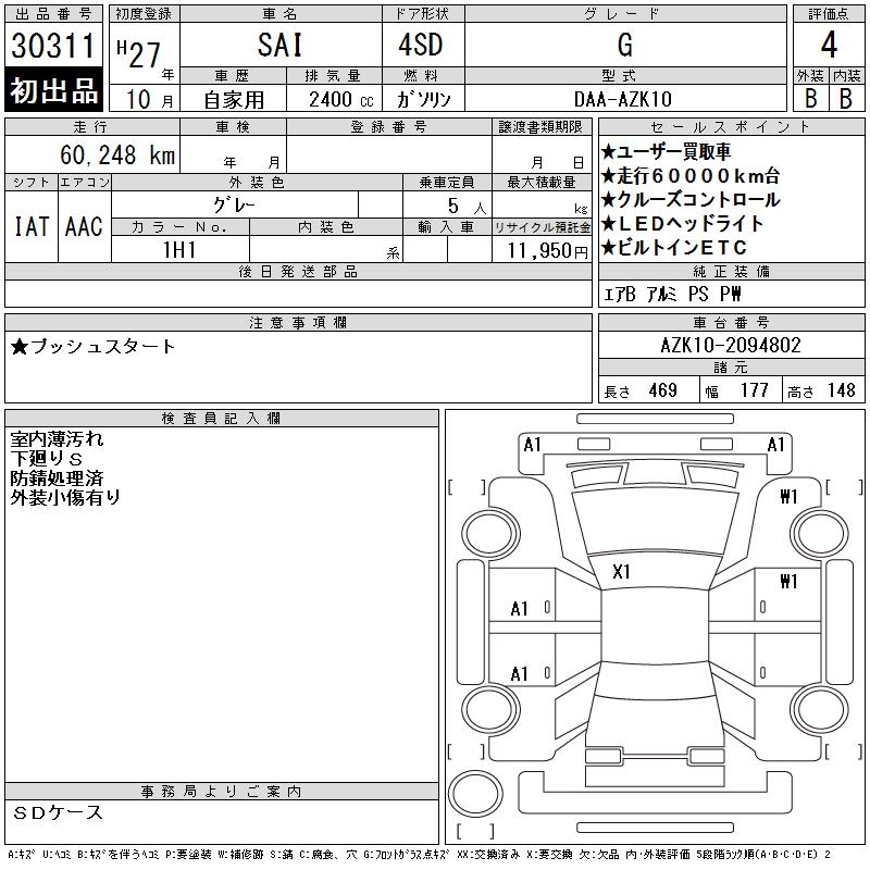 TOYOTA SAI G - лот 30311