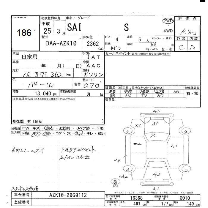 TOYOTA SAI S - лот 186