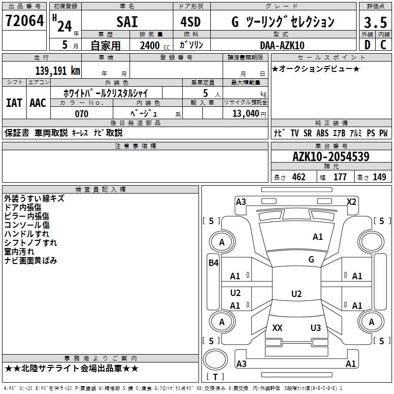 TOYOTA SAI G TOURING SELECTION - лот 72064