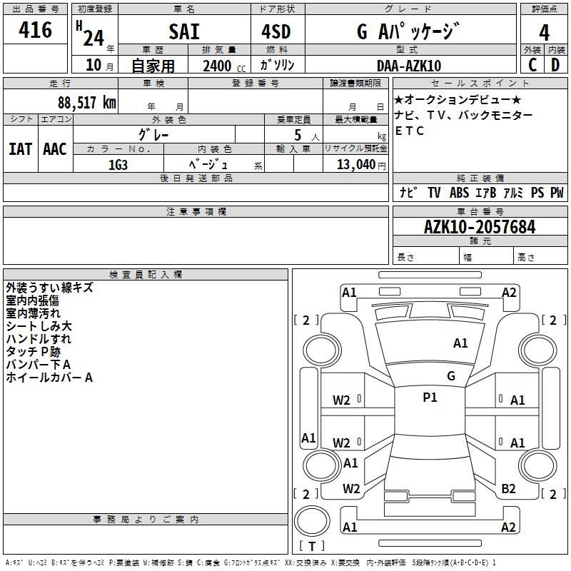 TOYOTA SAI G A PACKAGE - лот 416