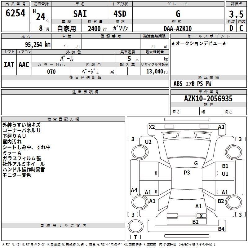 TOYOTA SAI G - лот 6254