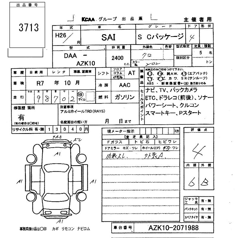 TOYOTA SAI - лот 3713