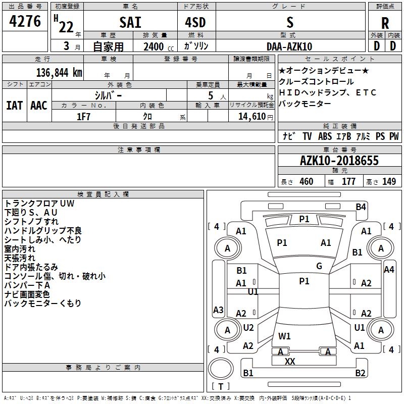 TOYOTA SAI - лот 4276