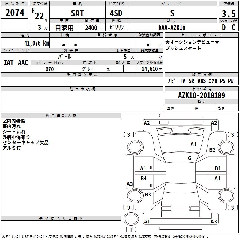 TOYOTA SAI - лот 2074