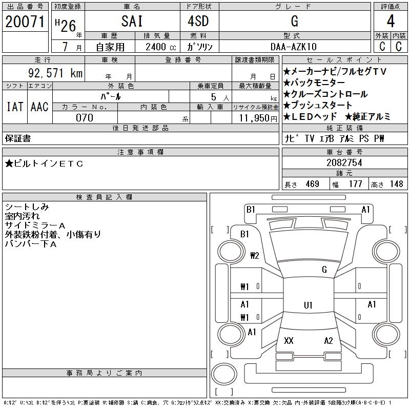 TOYOTA SAI - лот 20071