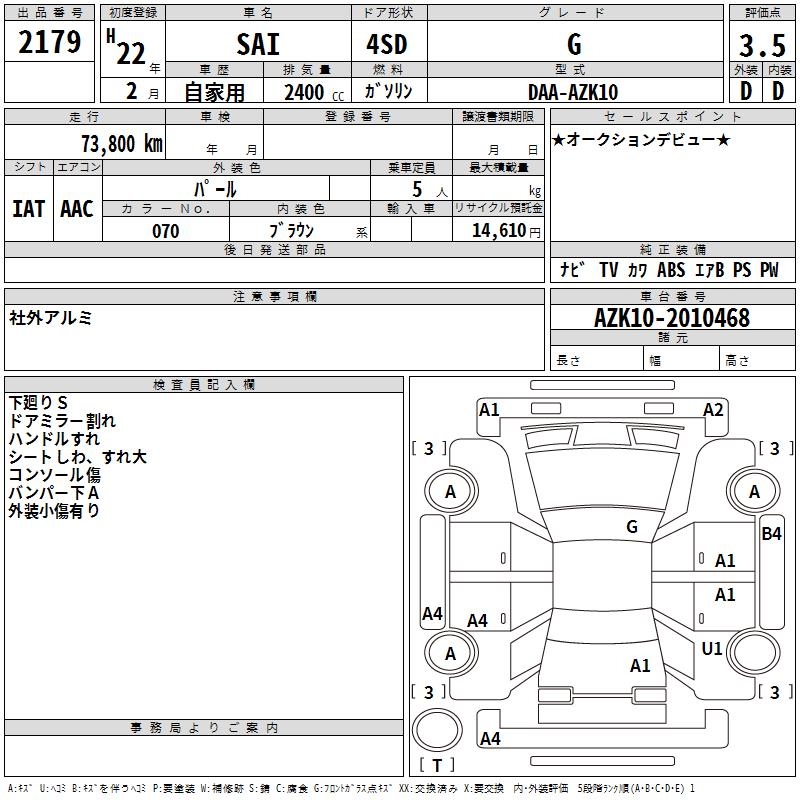 TOYOTA SAI - лот 2179