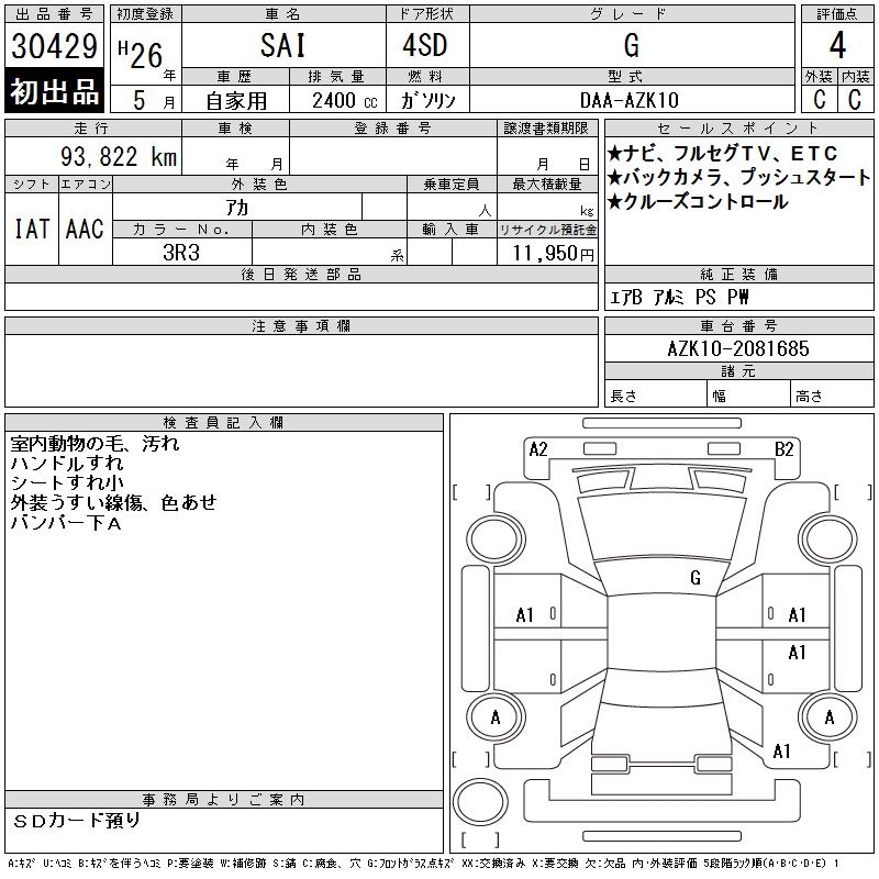 TOYOTA SAI - лот 30429