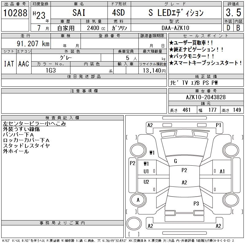 TOYOTA SAI - лот 10288