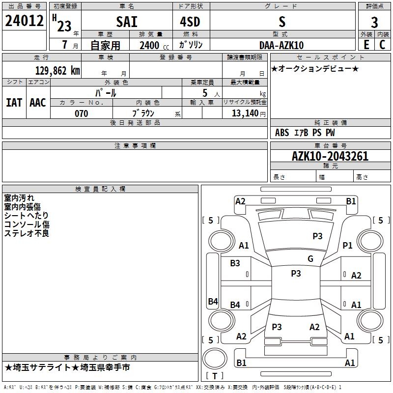 TOYOTA SAI - лот 24012