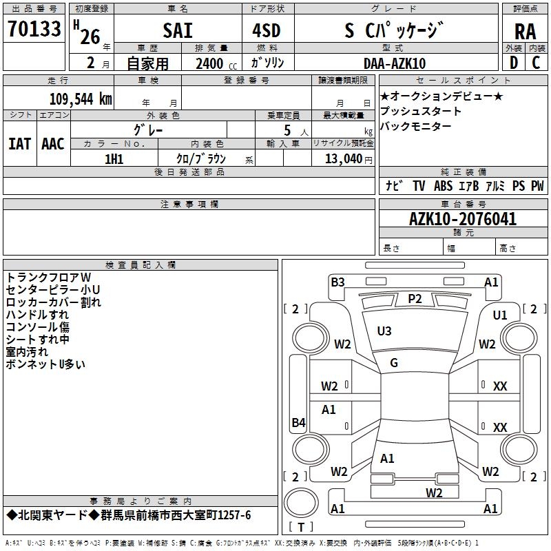 TOYOTA SAI S C PACKAGE - лот 70133