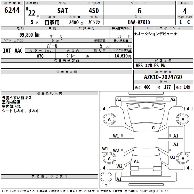 TOYOTA SAI G - лот 6244