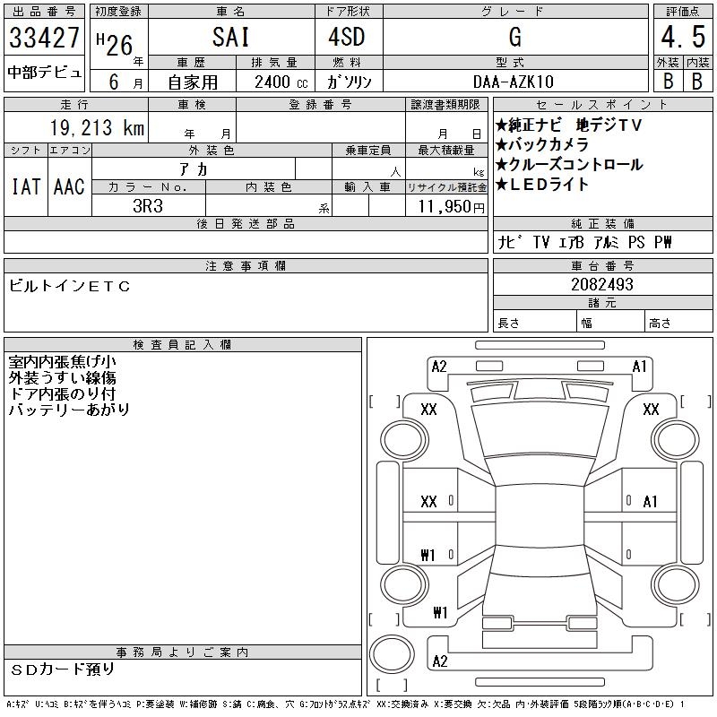 TOYOTA SAI G - лот 33427