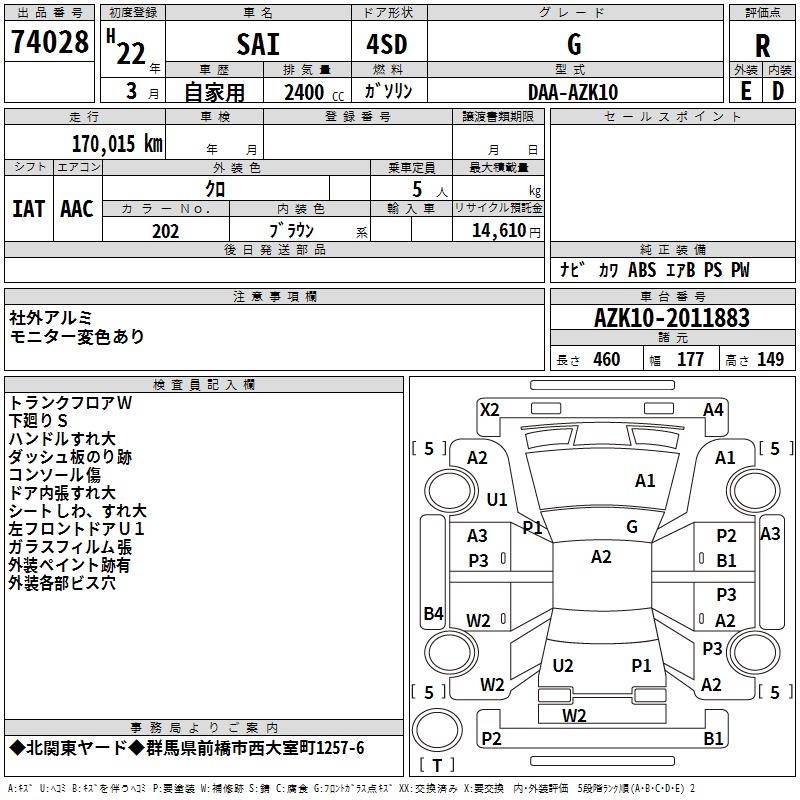 TOYOTA SAI G - лот 74028