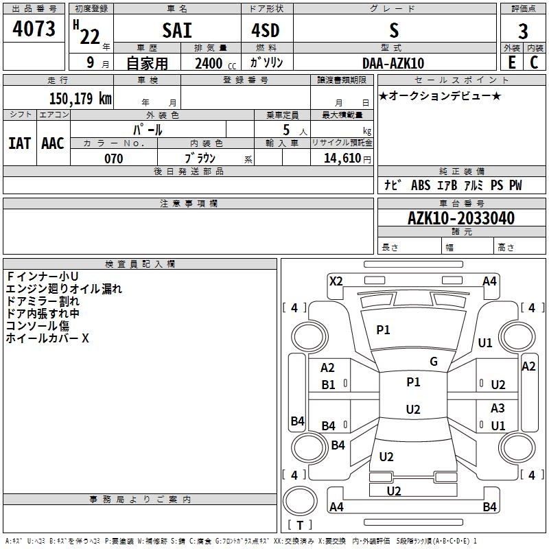 TOYOTA SAI S - лот 4073