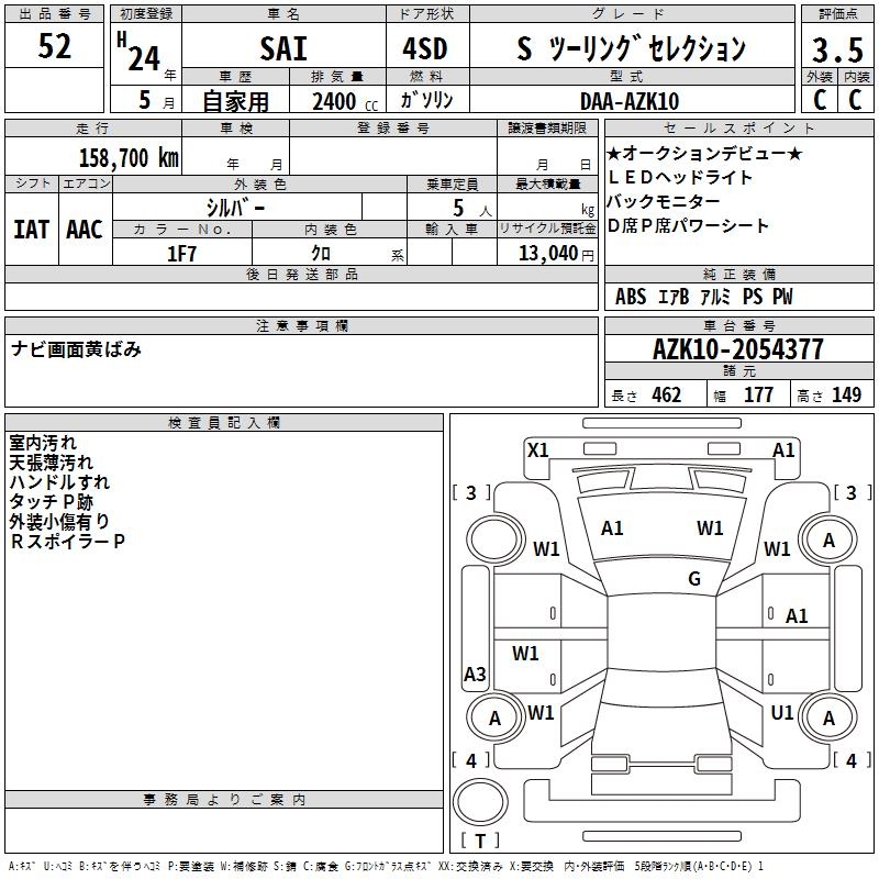 TOYOTA SAI S TOURING SELECTION - лот 52