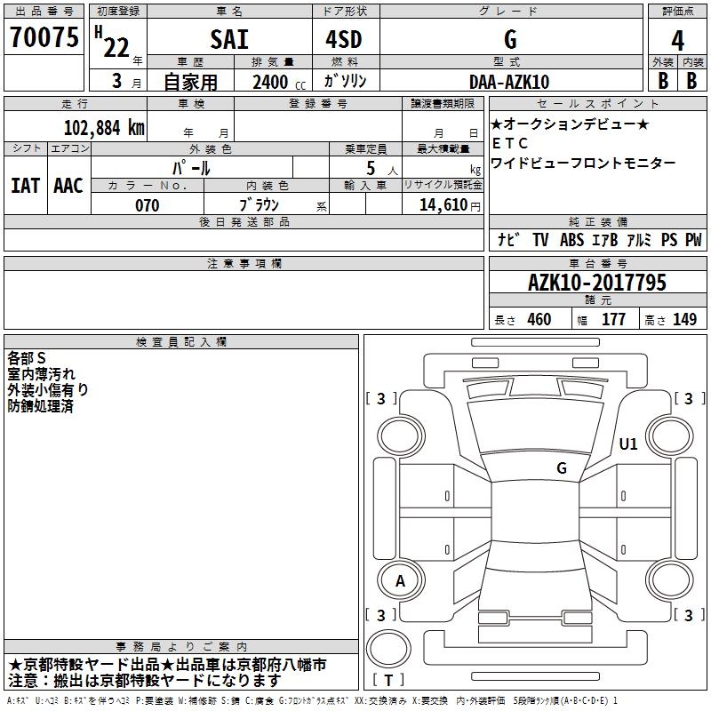TOYOTA SAI G - лот 70075