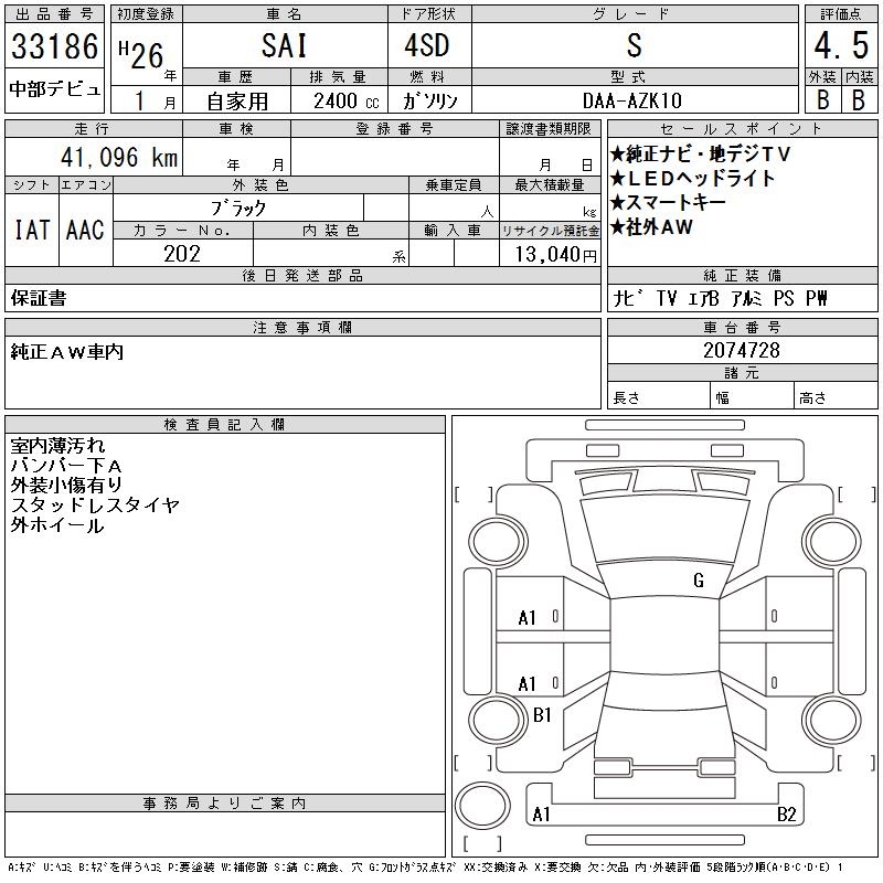 TOYOTA SAI S - лот 33186
