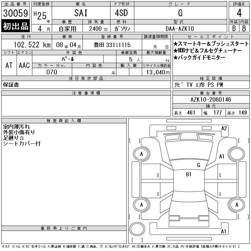 TOYOTA SAI G - лот 30059