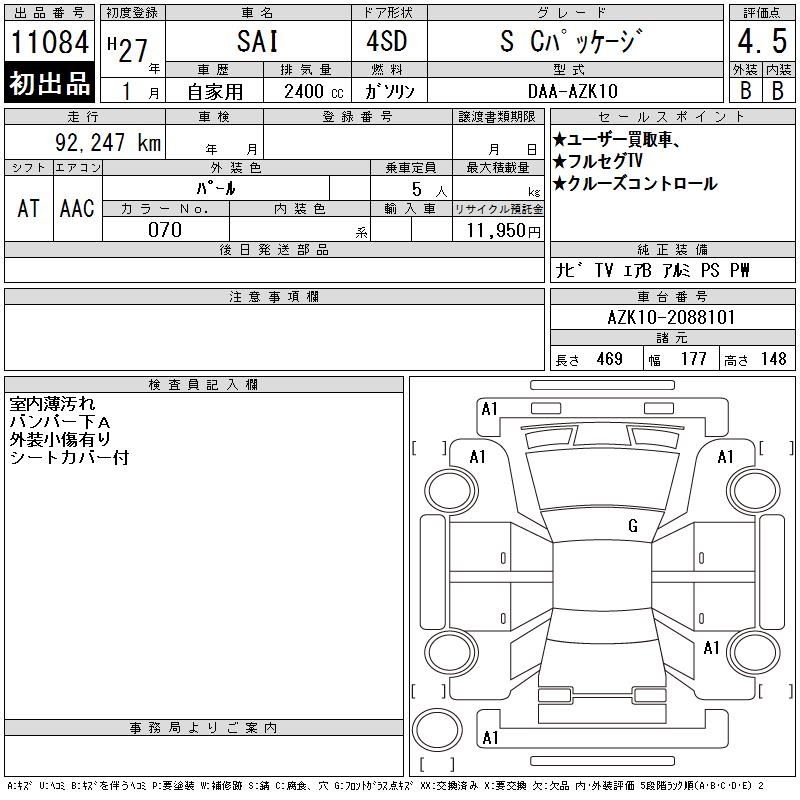TOYOTA SAI S C PACKAGE - лот 11084
