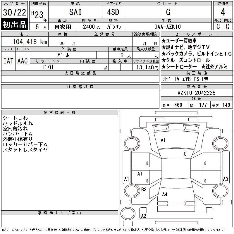TOYOTA SAI G - лот 30722